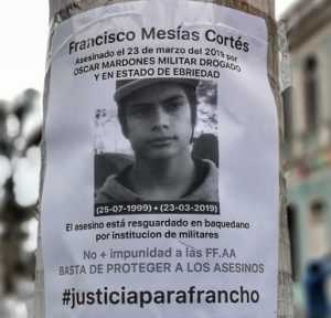 Dijo el abogado que esperan justicia con una sentencia ejemplar, es decir con cumplimiento efectivo de cárcel. «Junto a sus padres, Milincen y Alfredo, familiares y amigos exigimos justicia para Francho, es decir, una condena ejemplar de cumplimiento efectivo en la cárcel, sin beneficios para el asesino, quien por ser militar durante la investigación estuvo recluido un tiempo menor en un regimiento compartiendo con sus colegas y jamás ha mostrado arrepentimiento por su responsabilidad en el homicidio de Francisco Mesías».