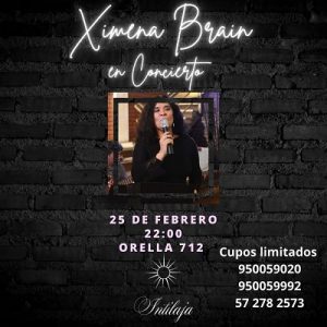 Este sábado 25, a las 22.00 horas, estará en un concierto más intimo en INTILAJA, ubicado en 1Orella 712, lugar en donde Bernardo Ilaja, hijo de un gran músico Iquiqueño Bernardo Ilaja, también abre sus puertas para este tipo de música, tipo peña añorando otros tiempos, contó Ximena, quien ya se encuentra pasando unos días en su Iquique querido.