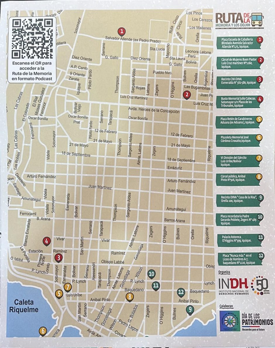 “Ruta de la Memoria y Derechos Humanos”, se denomina la visita guiada en buses, a doce lugares de memoria en Iquique, que realizará, este sábado 27, a las 10.00 y las 14.00 horas, el Instituto de derechos Humanos, INDH – Tarapacá. Es una forma contribuir para incorporar la memoria reciente y los DDHH, al Día de Los Patrimonios.