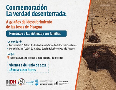 En el marco de las acciones conmemorativas de los 50 años del Golpe de estado en Chile, en una iniciativa en conjunto entre el INDH Tarapacá, la Municipalidad de Iquique y la CORMUDESI, se realizará un completo programa de adhesión a esta fecha, a contar de las 18.00 horas, en el frontis del Museo Regional de Iquique. Parte con el documental «El Palero» y luego continúa con la exhibición de la obra «Lobo».