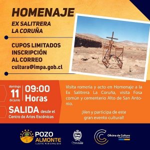 En el marco del Pro-Centenario de la matanza de la Oficina La Coruña, se realizarán diversas actividades conmemorativas en Pozo Almonte, a través de la Municipalidad.