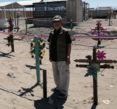 Oscar Torres en el Cementerio de Huara. Su cree que hay una fosa común, donde yacerían los restos de obreros asesinados en Salitrera Maroussia.