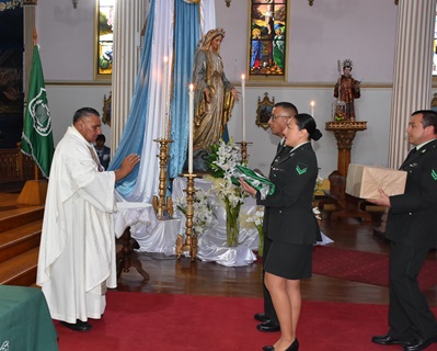 El oficio religioso contó con la asistencia del director regional, coronel, Juan Carlos Zamora, la Contralora regional, Sandra Estay Contreras, representantes de las Fuerzas Armada y de Orden, del alcalde subrogante, Marco Pérez y comunidad católica.