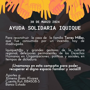 Una de las viviendas pertenecía a la familia de connotados actores Jaime Torres Lemus fallecido, y Cecilia Millar Sanhueza, destacados por su aporte a... Incendio en casco antiguo de Iquique se lleva parte de la historia y memoria de la ciudad;  y de una familia comprometida con el arte, el teatro y los DDHH