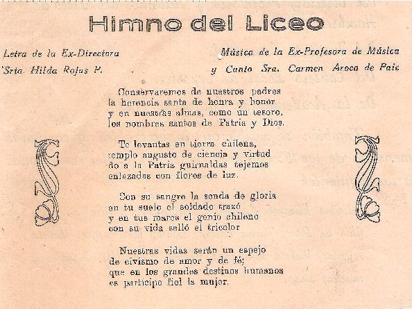 El Himno Nacional, el Himno del Liceo de Niñas y  su Canción de Aniversario “…que hoy brota de mi corazón, para el Liceo que es templo de honor…”,  fueron interpretados a viva voz por las ex liceanas de diversas generaciones, que se reunieron en el establecimiento para conmemorar los 124 años del histórico colegio que formó a generaciones y generaciones de alumnas.  Algunas de ellas, fueron luego docentes impartiendo clases en las mismas aulas que la formaron.