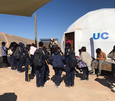 En la primera actividad del convenio, la visita a la Estación Atacama UC, centro meteorológico ubicado en la cordillera de la costa en el sector de Alto Patache, contó con la presencia de 32 niñas, niños y jóvenes pertenecientes a establecimientos educacionales de la región, quienes pudieron conocer el Oasis de Niebla de Alto Patache, el cual está localizado en la cordillera de la Costa, en pleno Desierto de Atacama, a 70 kilómetros al sur de Iquique.