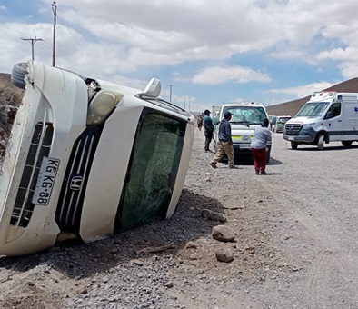 El primer accidente ocurrió alrededor de las 11:00 horas, cuando un vehículo en el que viajaba un matrimonio se volcó producto de las malas condiciones de la vía. Lamentablemente, el conductor, identificado como A.M., perdió la vida en el lugar, mientras que su esposa fue trasladada de urgencia al Hospital Regional de Iquique debido a la gravedad de sus lesiones.