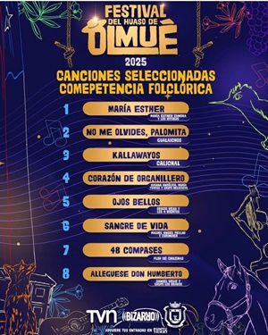 El Festival de Olmué, en su versión 2025, se realizará entre el 16 y 19 de enero de 2025, en el pueblo del mismo nombre, ubicado en la V Región de Valparaíso. Y Tarapacá tendrá nuevamente el orgullo de estar presente a través de Calichal y su tema de inspiración nortina Kallawayos.