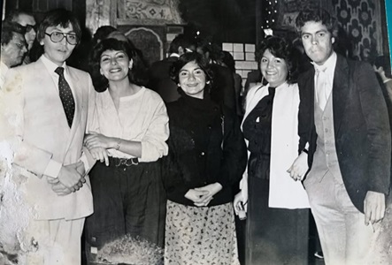 Año 1983, periodistas en el Casino Español de Iquique. Aparecen Rodolfo Valencia, Ariela Millas, Dora Chipoco Jorquera, Anyelina Rojas y Miguel Ángel Allendes. Foto del archivo de Miguel Ángel Allendes