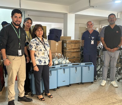 Entre los insumos entregados se incluyen toallas húmedas multiusos, cofias, rollos de sabanilla de papel, carros porta oxígeno, tubos de oxígeno, concentradores de oxígeno portátiles, buzos desechables, guantes, mascarillas desechables, termómetros digitales y sillas de ruedas. Además, se donaron sillas de escritorio para mejorar las condiciones laborales de los funcionarios del hospital.