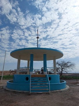 Dice doña Elena: “Había que hermosear un espacio que hoy constituye el referente visual y obligatorio para quien llega hasta esas desoladas tierras”. Hoy cuenta con nuevas plantas, y consiguieron que las autoridades de Pozo Almonte facilitaran agua para su riego y mantención.
