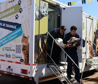 Más de 100 perros y gatos de caleta Chanavayita recibieron atención por parte de la clínica veterinaria móvil, herramienta destinada a controlar la población canina y felina en caletas de Iquique.