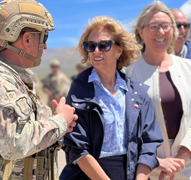 Para la delegada presidencial, Adriana Tapia, estar en terreno en Colchane significa “cumplir con todos los objetivos y todos los propósitos que nos ha encomendado el presidente José Antonio Kast. En lo particular hemos participado una reunión con la JAF y hemos visualizado y constatado en terreno, con una demostración, como actúan inter agencialmente en este territorio, donde trabajan las Fuerzas Armadas, Carabineros, PDI y todos los servicios aledaños que tienen que estar presentes para el control migratorio, del narcotráfico y del crimen organizado que se da en nuestro territorio”.