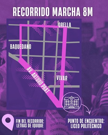 En Iquique, se han realizado diversas actividades conmemorativas, las que continuarán este domingo 8 de marzo, desde las 17.00 horas, con una marcha que partirá desde las afueras del Liceo Politécnico, para enfilar por calle Vivar, hasta Orella. Al llegar a Baquedano, la marcha seguirá por la Avenida Arturo Prat, para concluir el recorrido en las letras de Iquique, sector Cavancha.